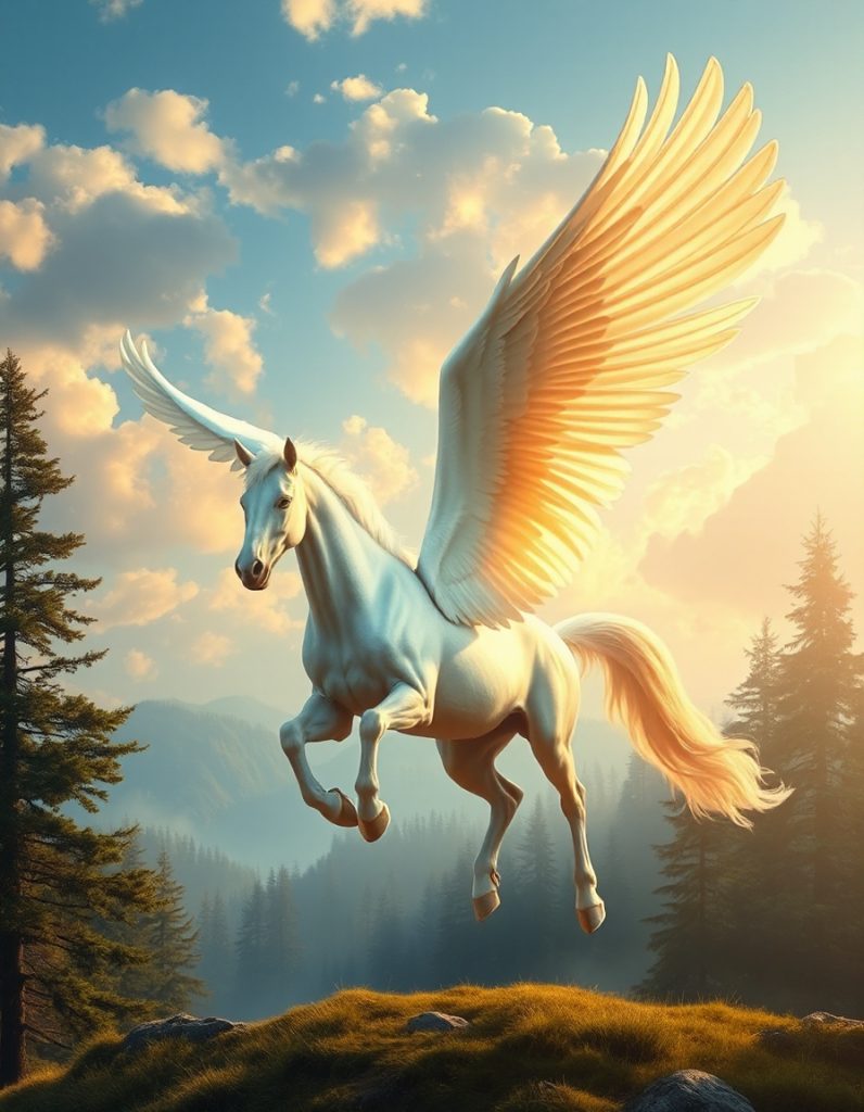 ペガサスは翼を持つ馬として描かれ、気品のある美しさで多くの文化や物語に登場する。